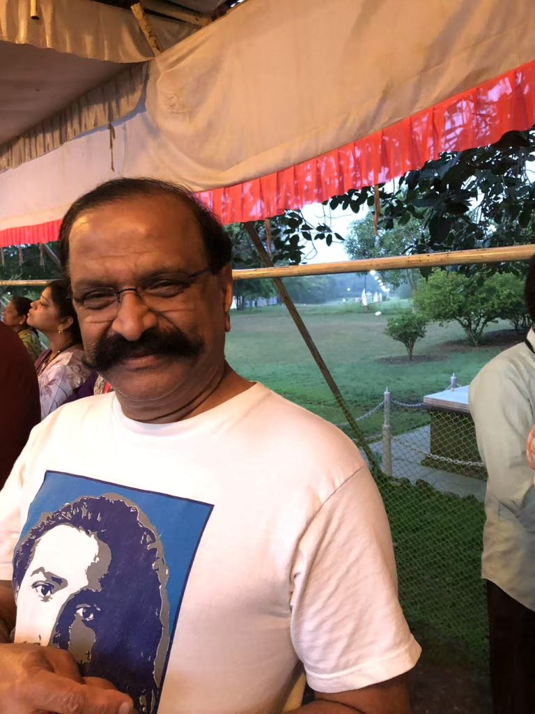 昨天早晨达善排队时,有一位名叫Ravi的爱者分享:他父母都跟随巴巴,但是他不相信巴巴,认为巴巴长得太像人,不像奎师那、罗摩那样神化。1985年他获得奖学金赴美读博,为了安慰父母,前来三摩地。进去后,看见左边坐着一位女士(他后来得知她是澳洲乐裴基先生的太太黛安娜,也是静修所餐厅巴巴系列绘画的画家)。他不知道该做什么,于是模仿她坐下(在右边)并把双手放在墓地大理石板边。没想到一股巨大的电流冲击全身,将他瞬间送到另一个意识状态。他走出三摩地的时候成了巴巴的爱者。后来他和家人定居美国。这是他今年第二次回美拉巴德朝圣。就在他讲这个故事的时候,一股浓浓的玫瑰芳香扑鼻而来。我说这是黛安娜常用的香水。他说我知道,我太太也学黛安娜,用这个品牌的香水。