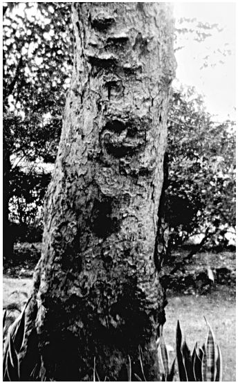 我正通过挂号信寄出一张树的快照。树干上能看到至爱巴巴面容的清晰形象。你若凑近看,能看到头上有个王冠的形状。这是一棵乌玛树,就长在我东边窗户的外面。乌玛树为印度教徒所崇敬,因为据说乌玛树是达塔特瑞亚的宝座,而他乃是上帝的三个方面(梵天、韦希奴和摩诃希,亦即创造者、维持者和消融者)的化身。许多坪坡岗村民,在巴巴在世期间没有达善过至爱巴巴,都涌来达善树上的巴巴形象,因为他们现在有了巴巴神性的证明。