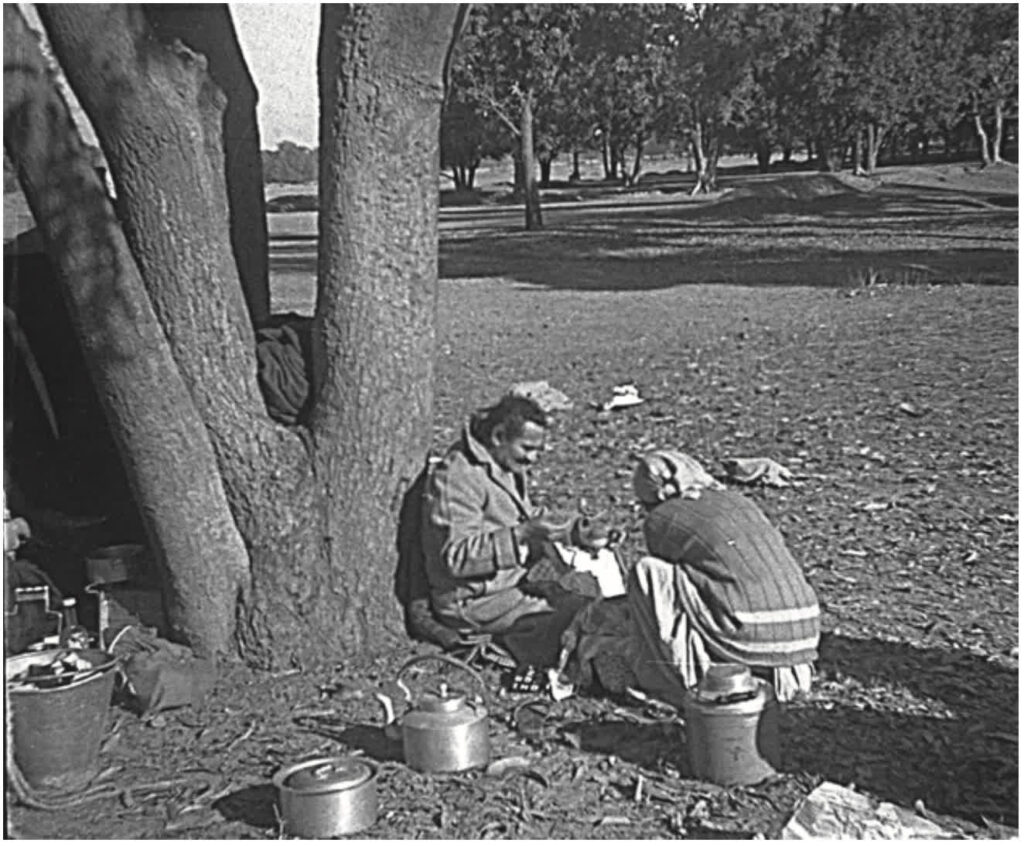 喝杯茶后,他们再次上路,一直走到傍晚。很多时候,直到下午三四点钟才到达预定目的地,卡卡已在那里的井边扎营,并开始做晚饭。